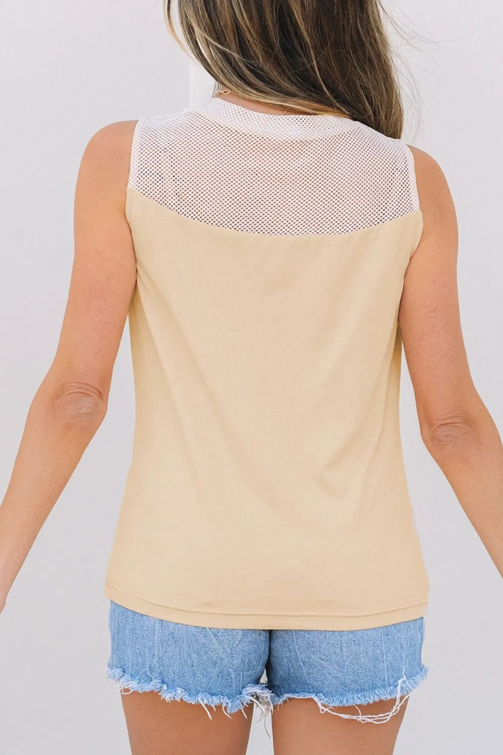 Mesh Patchwork Crew Neck Tank