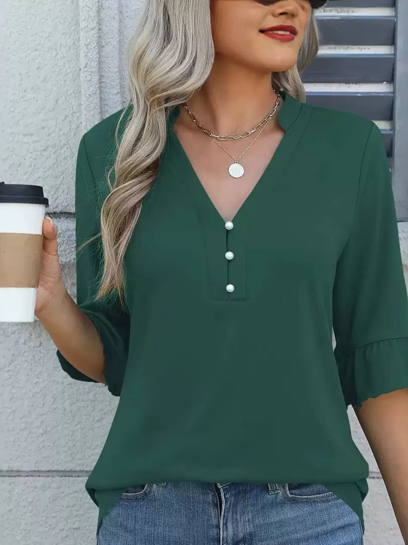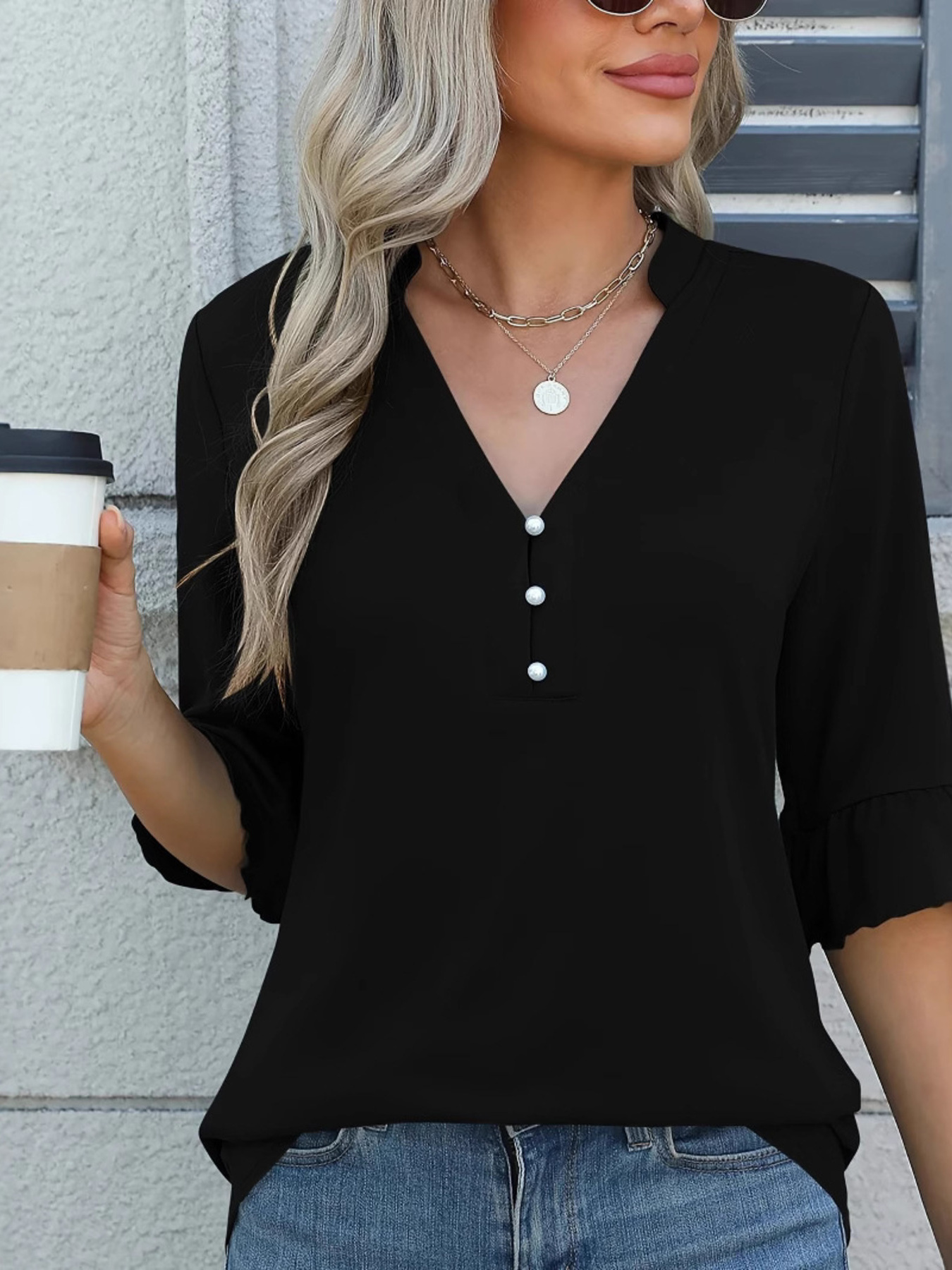 Full Size Notched Flounce Sleeve Blouse Plus Size