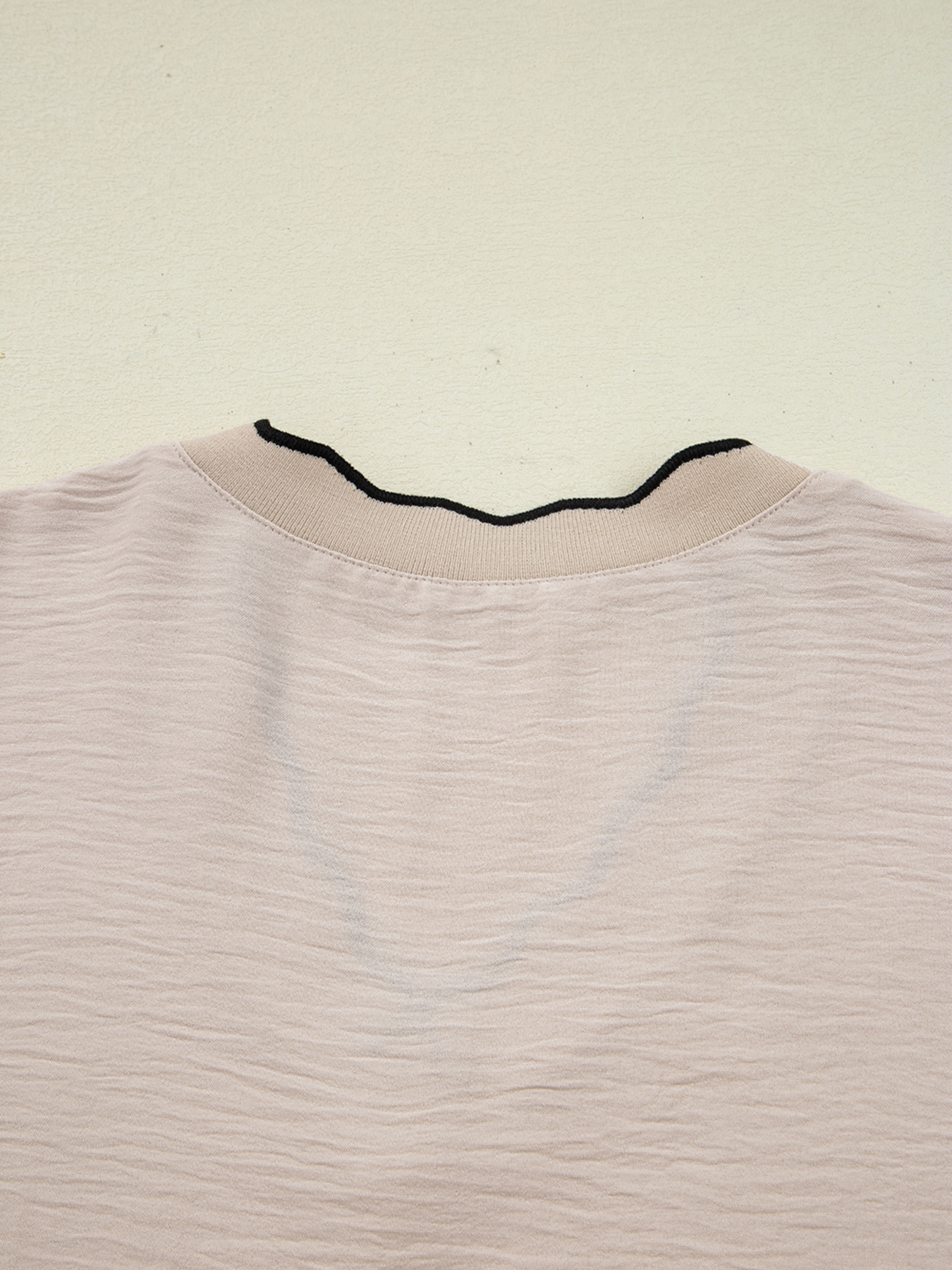 Contrast Scallop Trim V Neck Long Sleeve Blouse