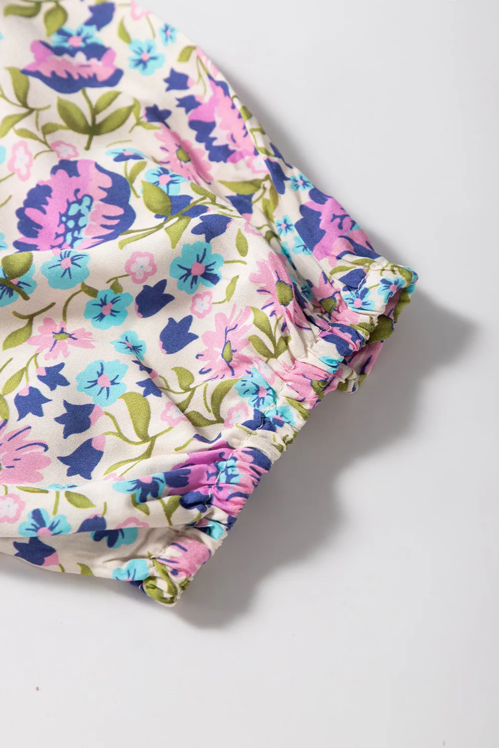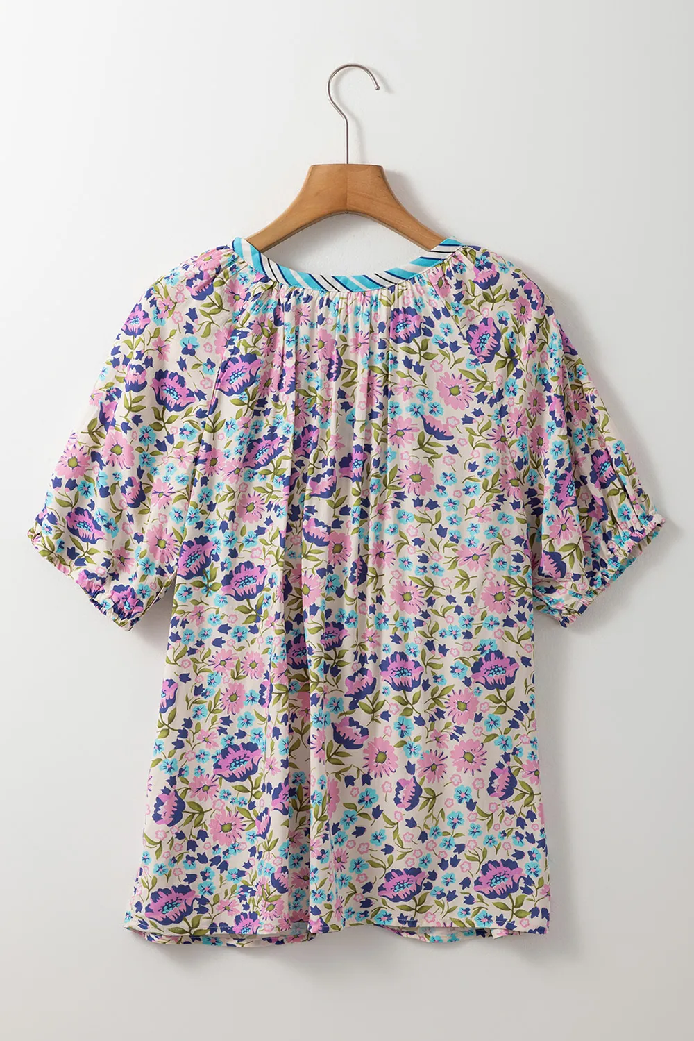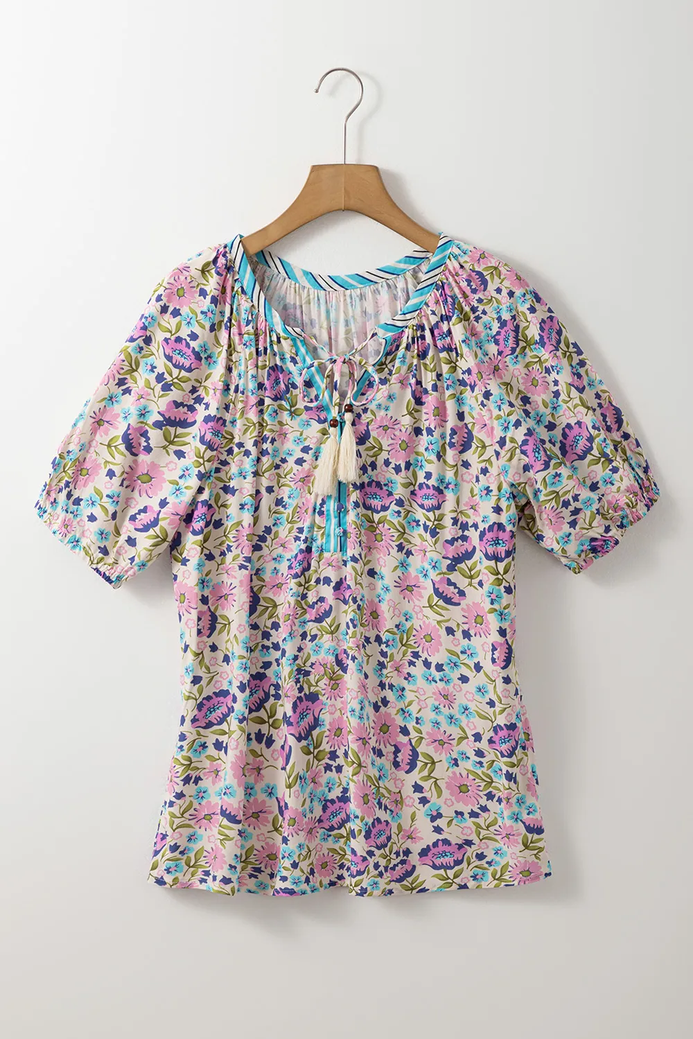 Floral Tie Neck Half Sleeve Blouse