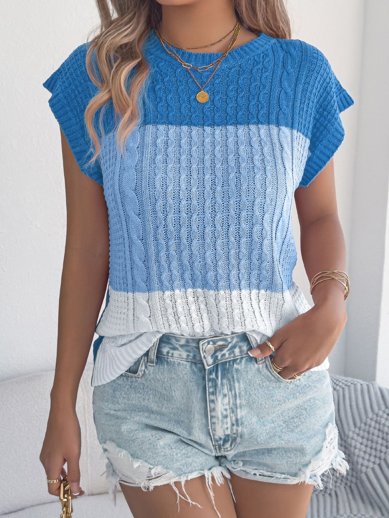 Color Block Cable Knit Sweater