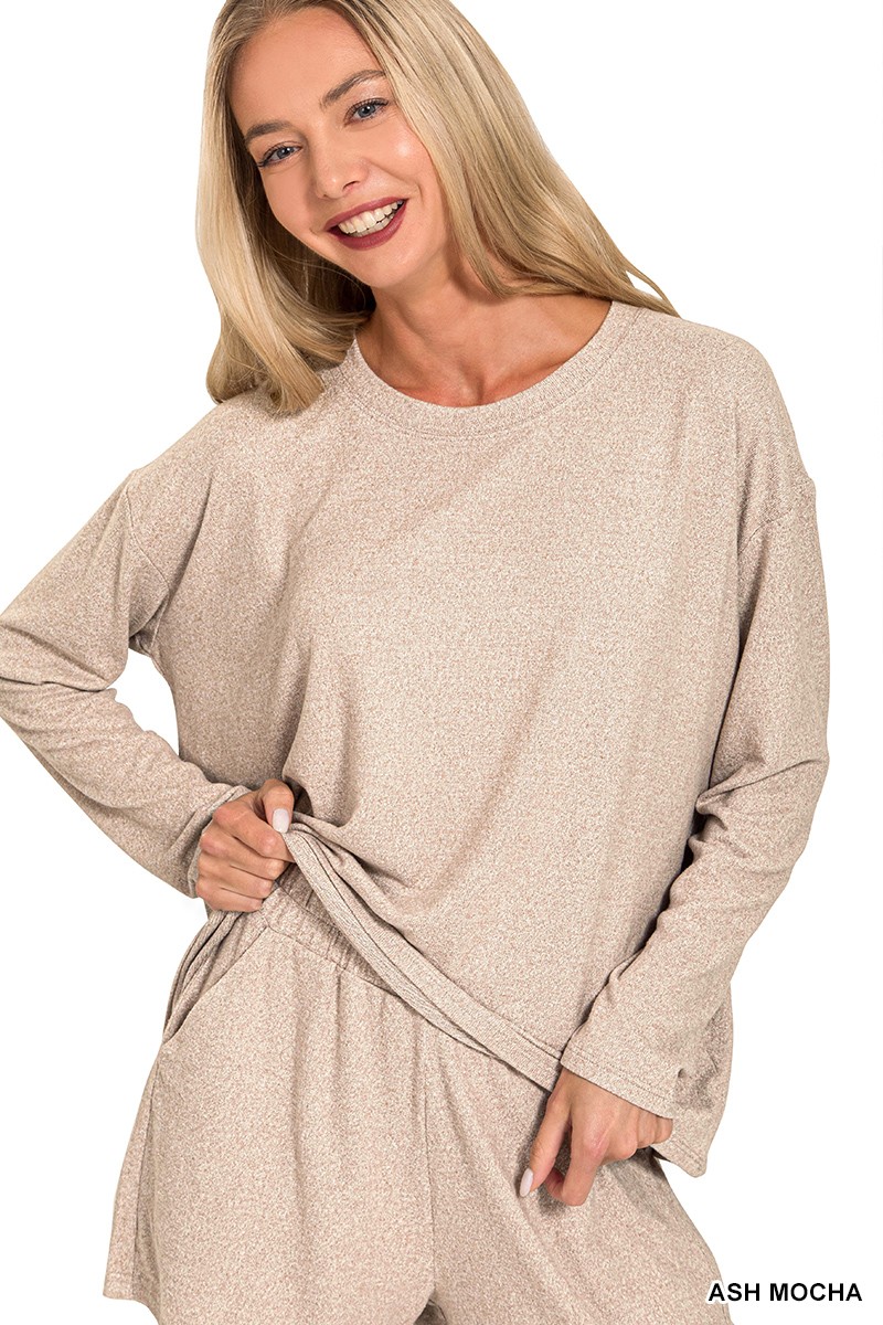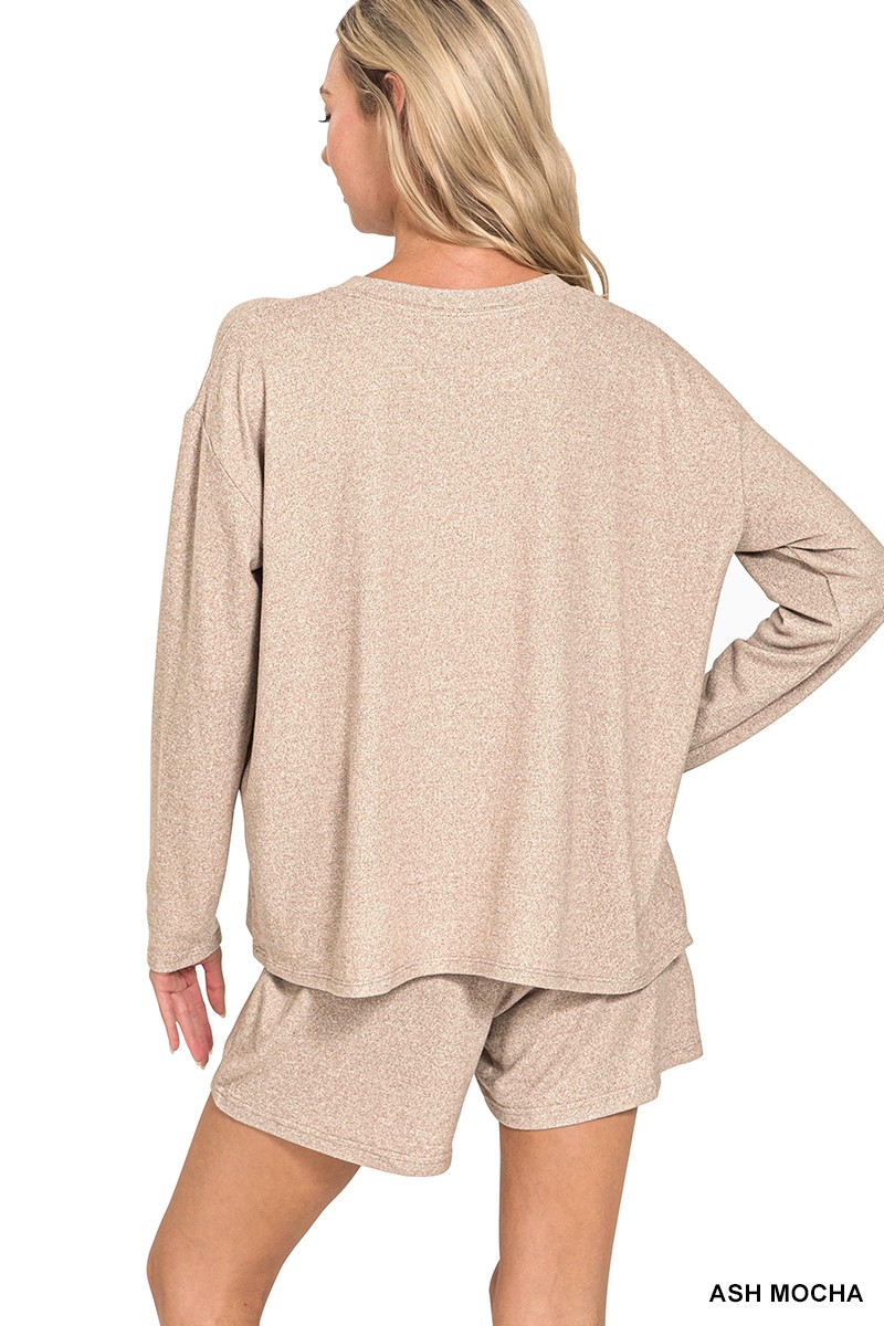 Zenana Soft Melange Long Sleeve Tee And Shorts Set