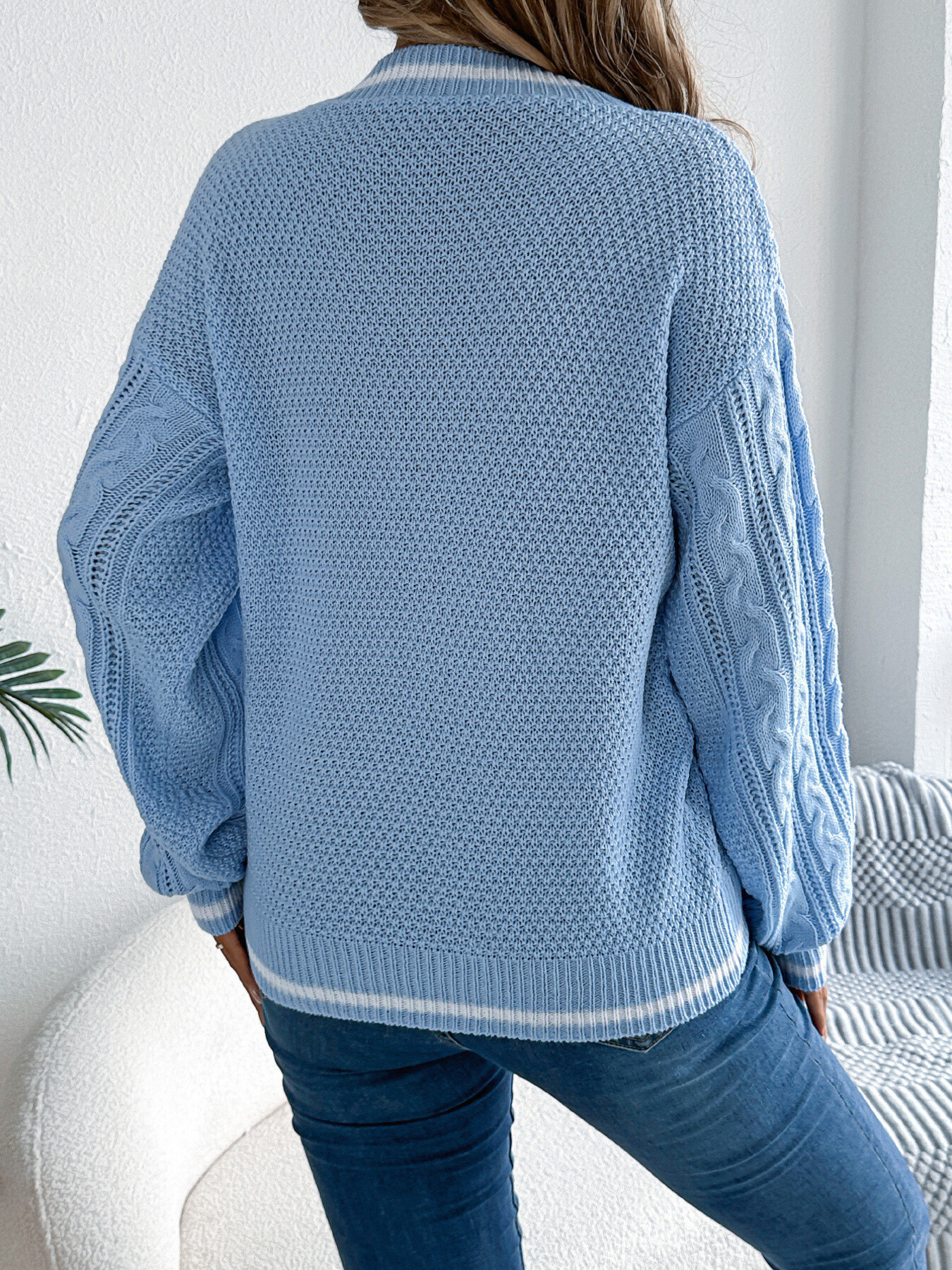 Cable Knit V-Neck Long Sleeve Sweater