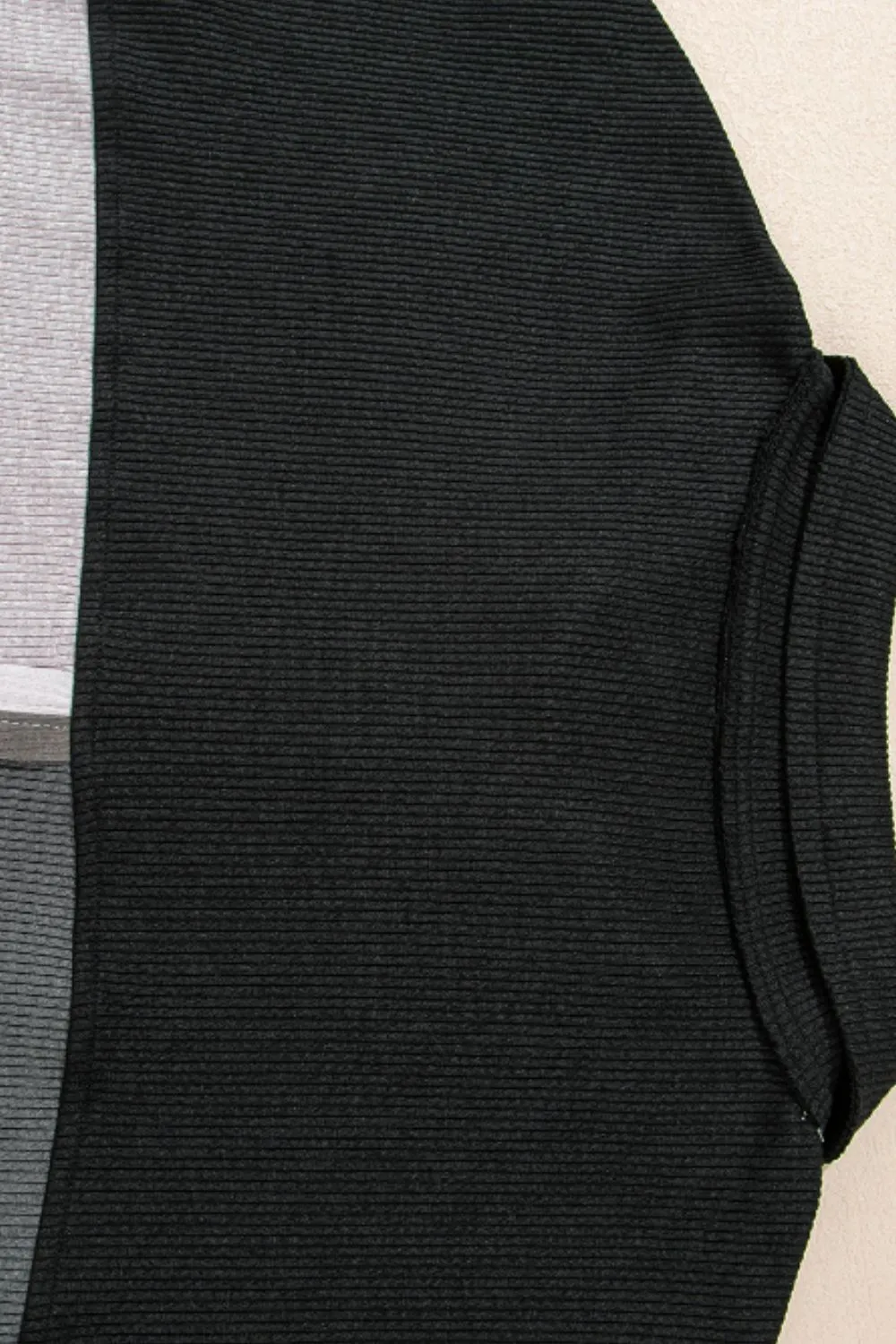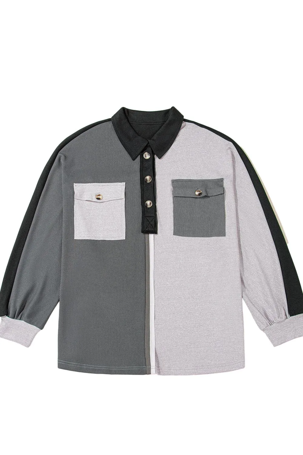 Color Block Collared Neck Long Sleeve Sweatshirt