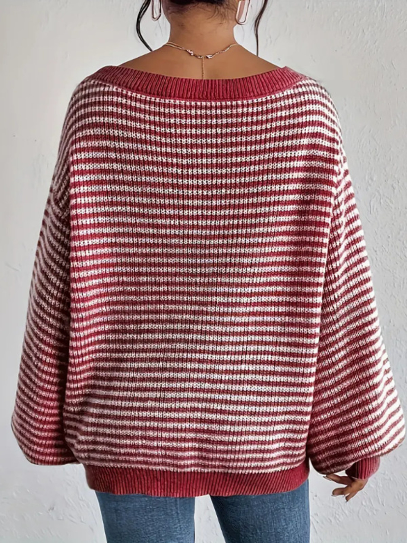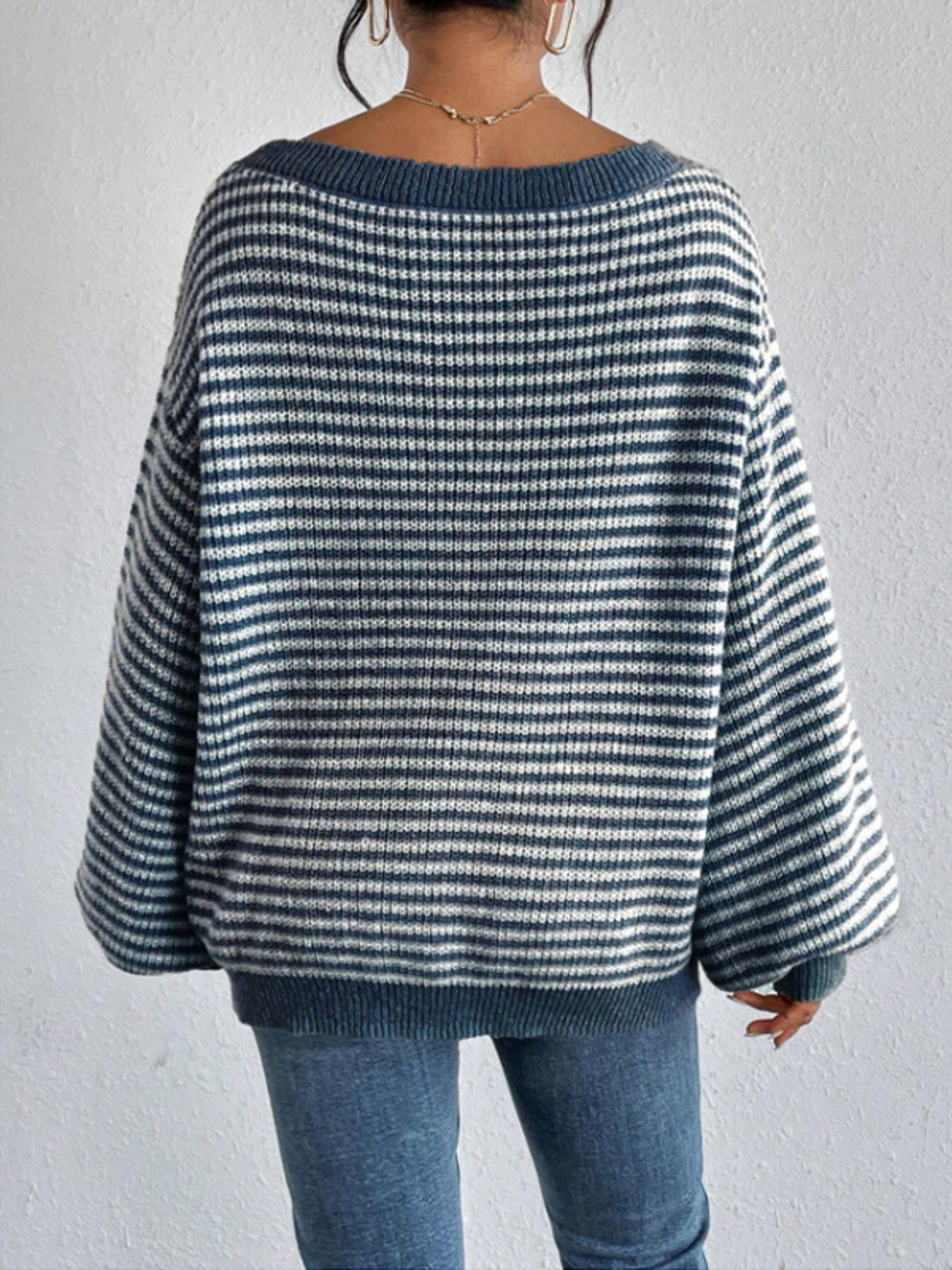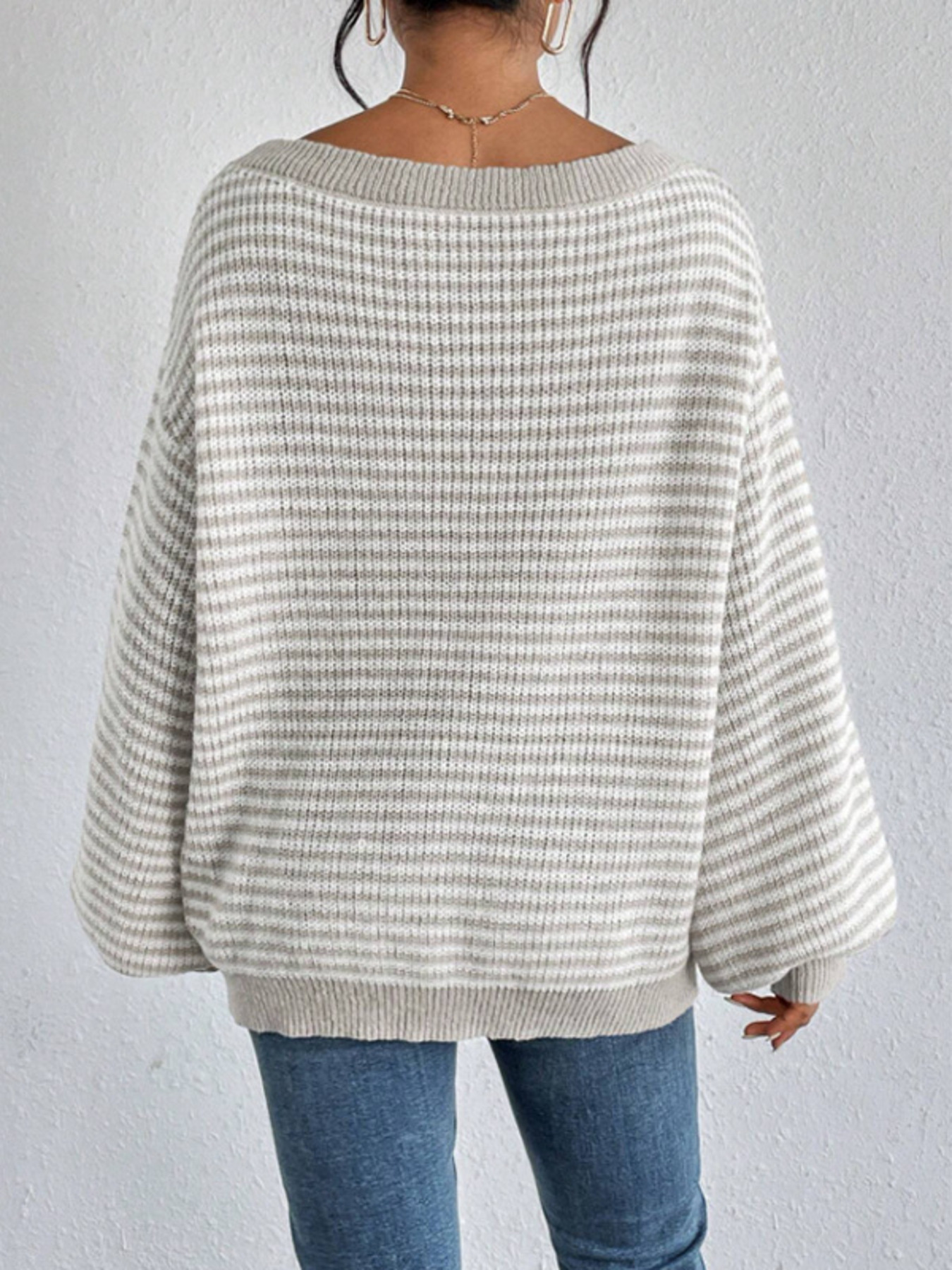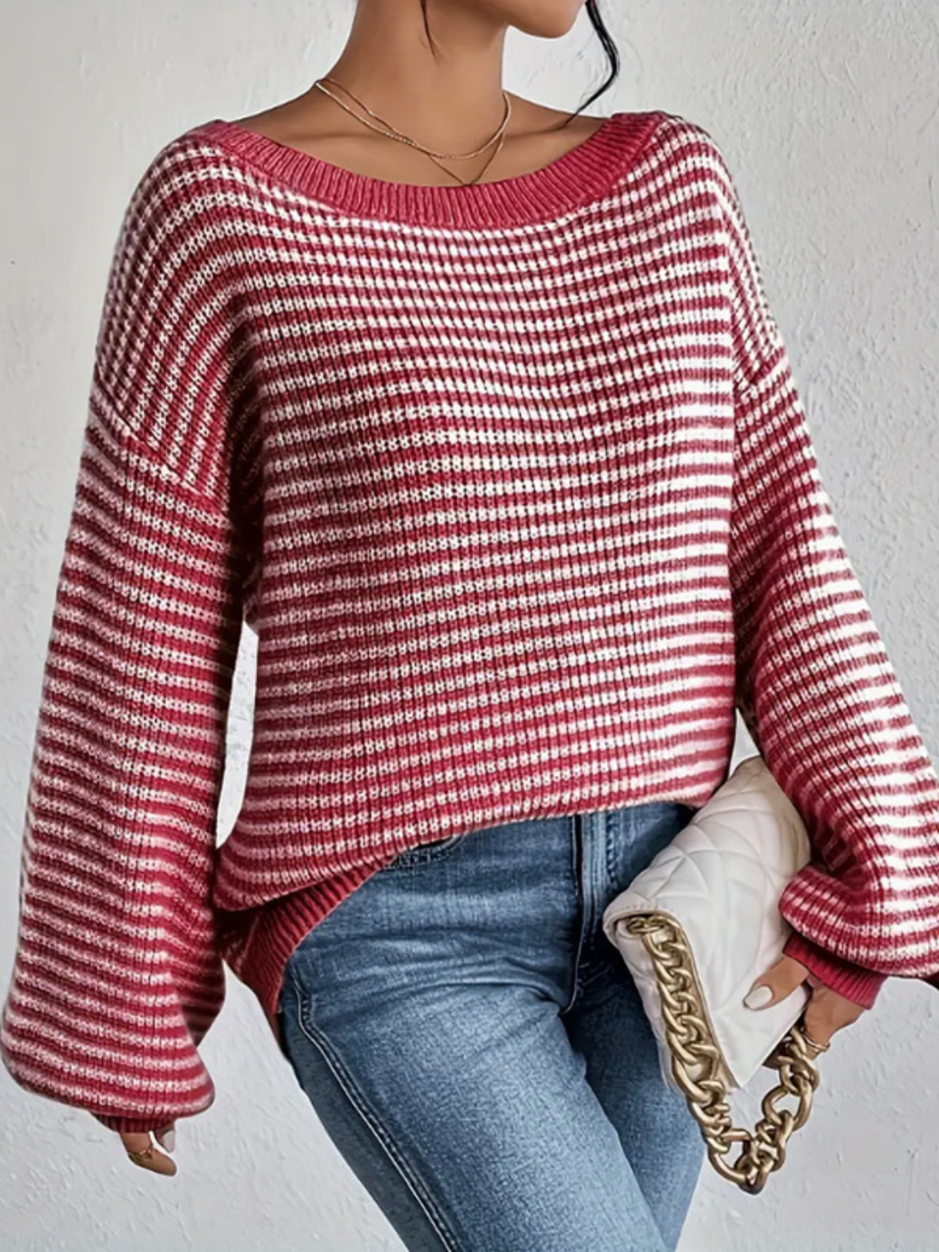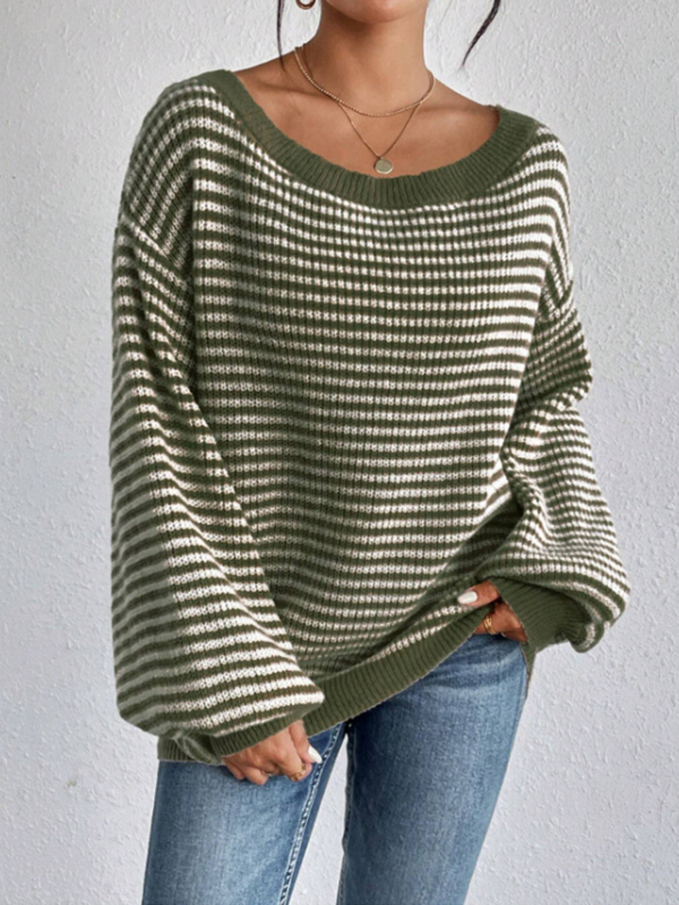 Striped Boat Neck Long Sleeve Sweater