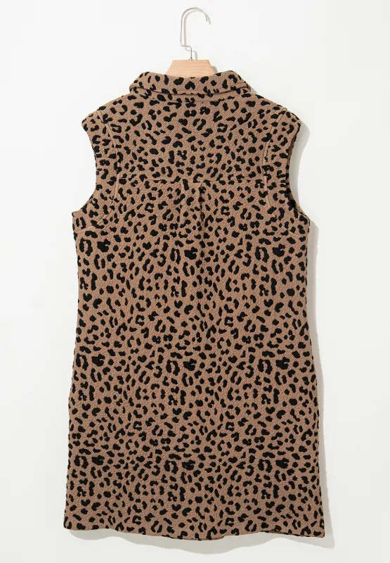 Leopard Johnny Collar Sleeveless Mini Dress