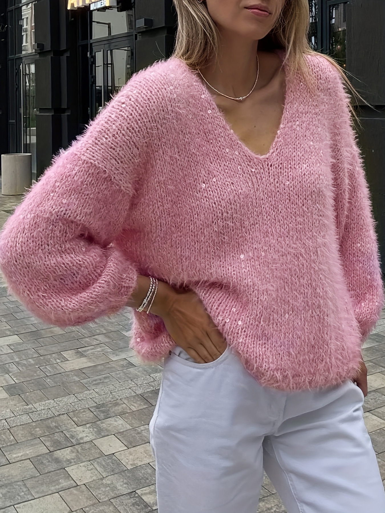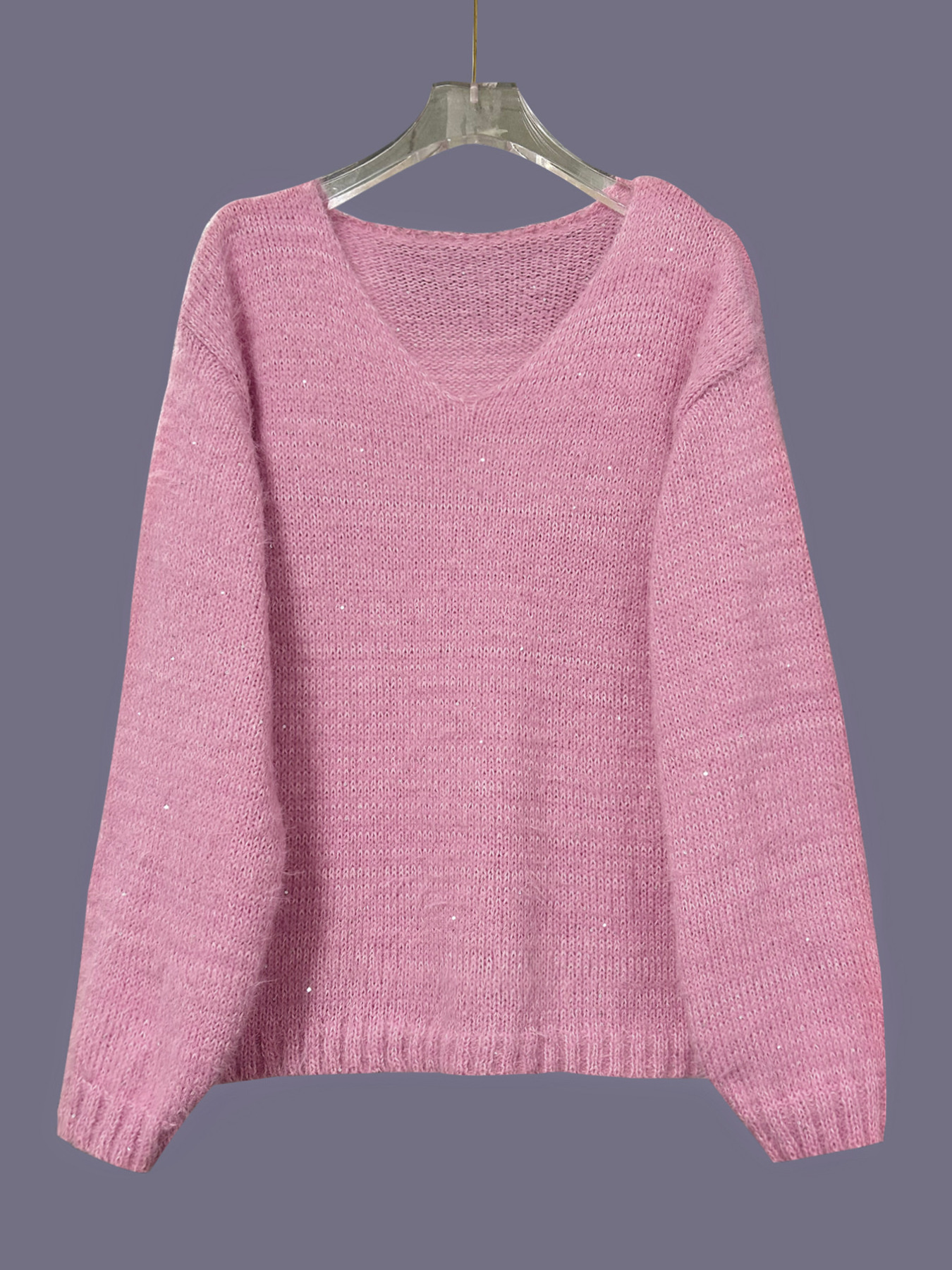 Sparkling Fuzzy V-Neck Knit Top