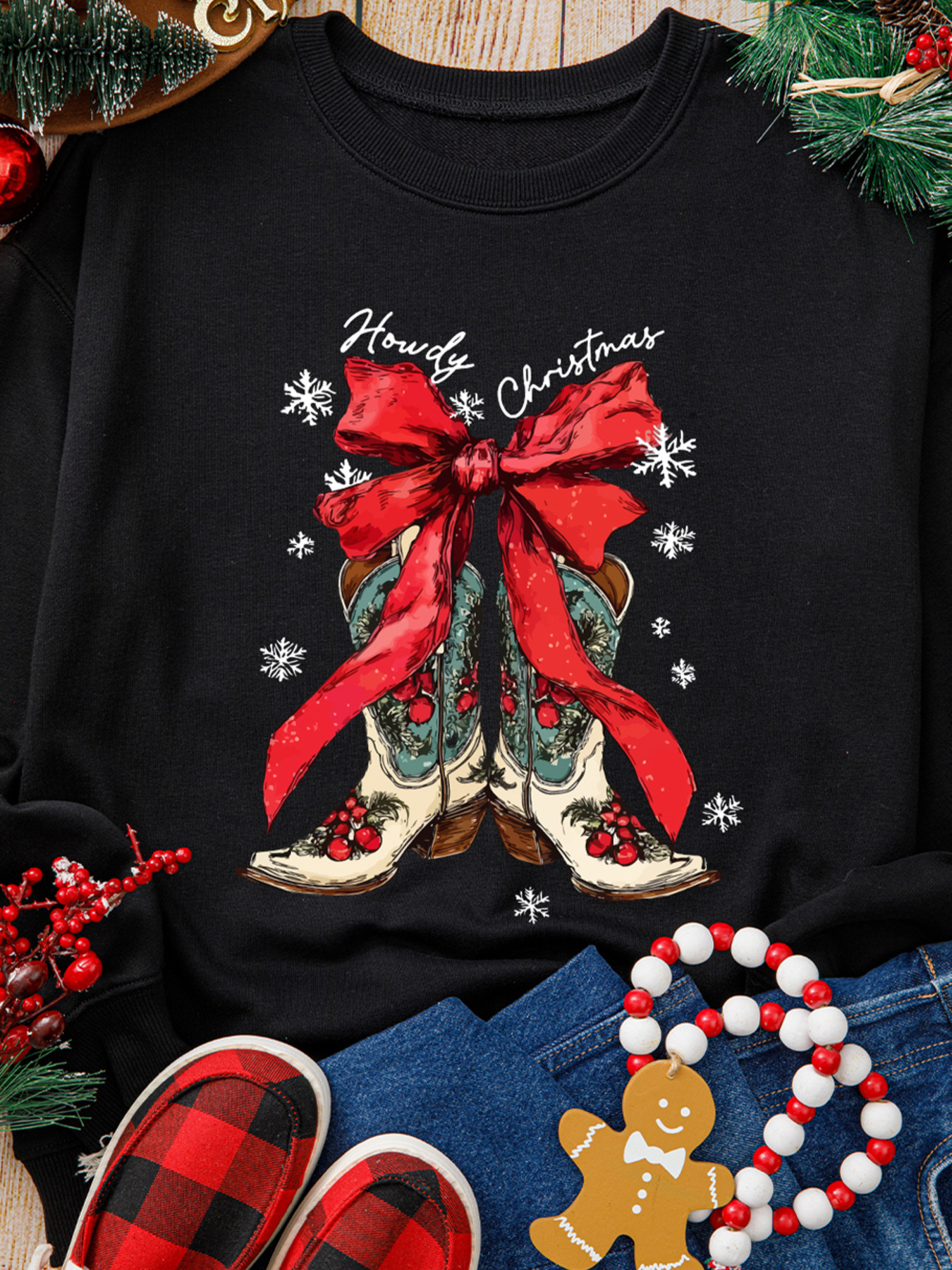 Howdy Christmas Ribbon Bow Knot Western Boots Graphic Sweatshirt