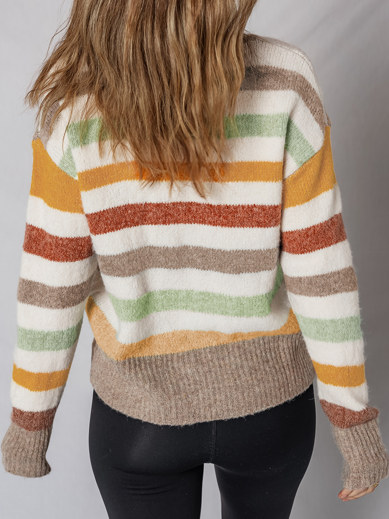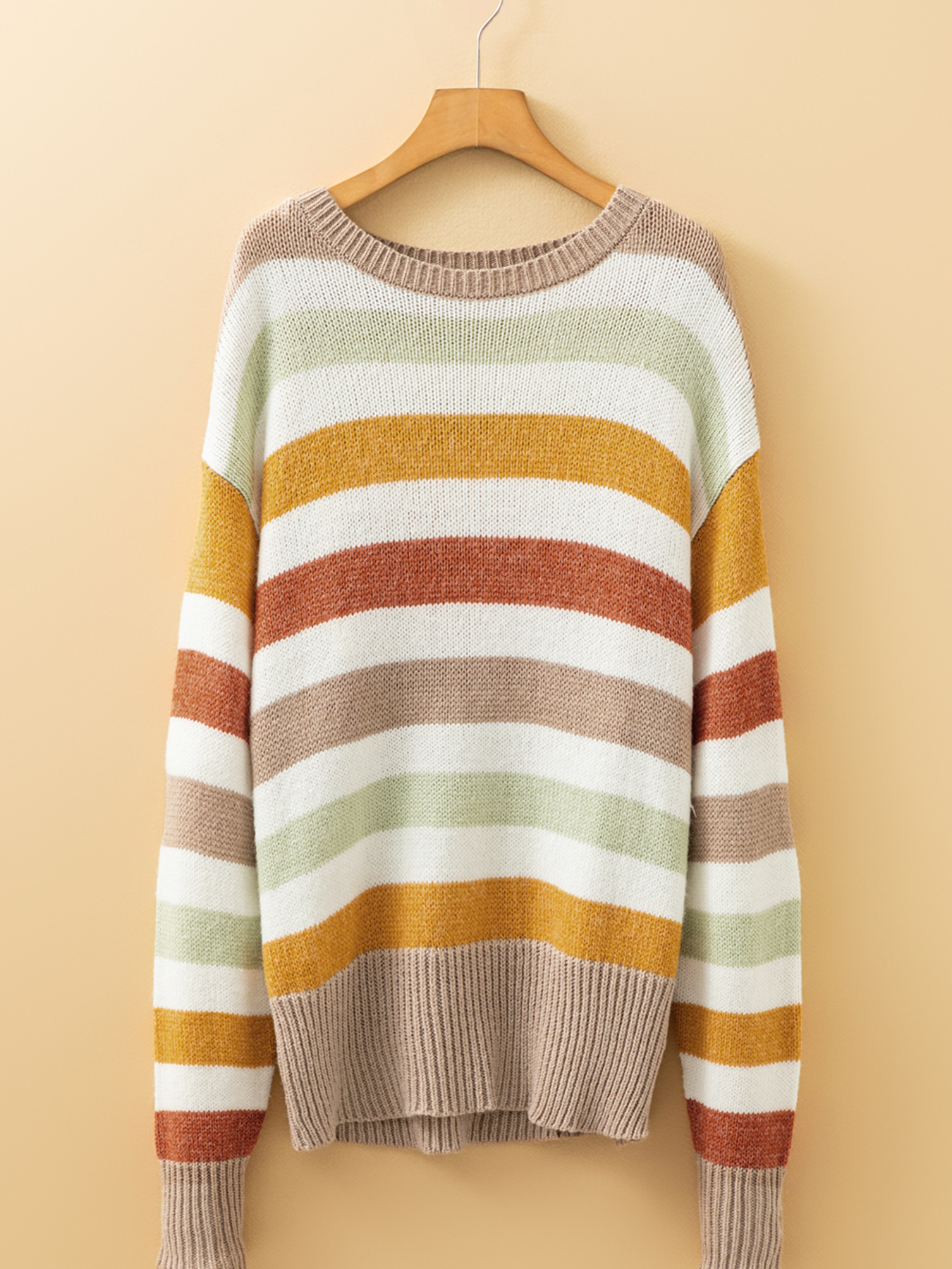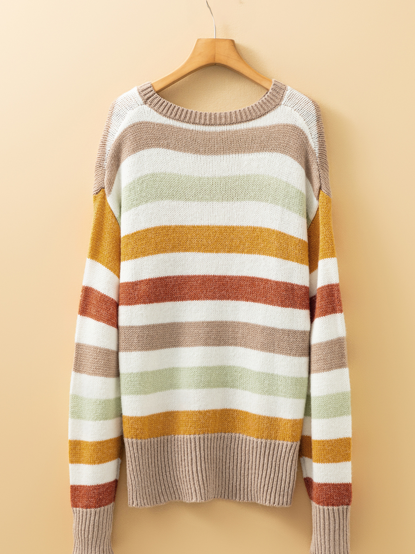 Multicolour Stripe Drop Shoulder Crew Neck Sweater