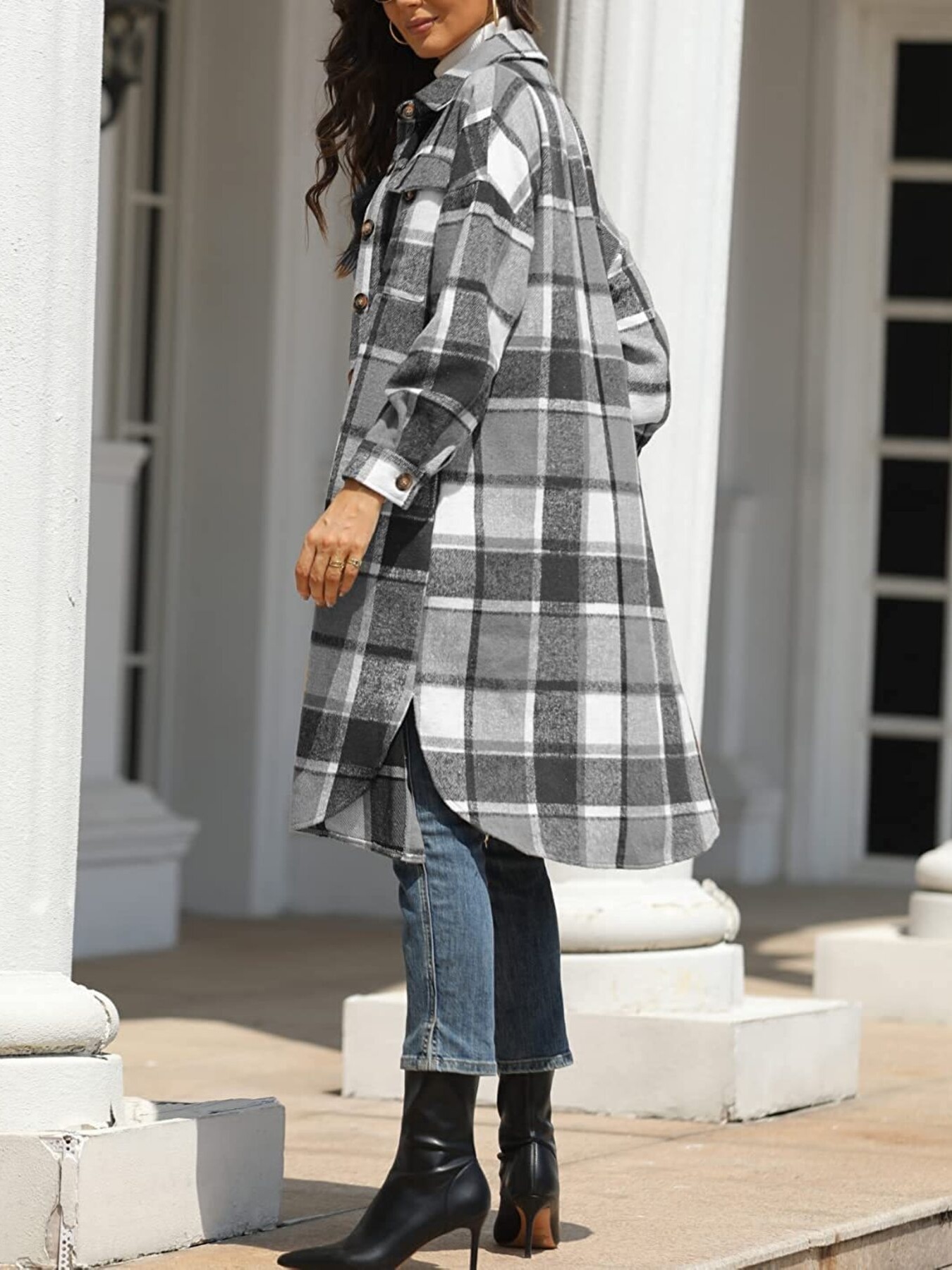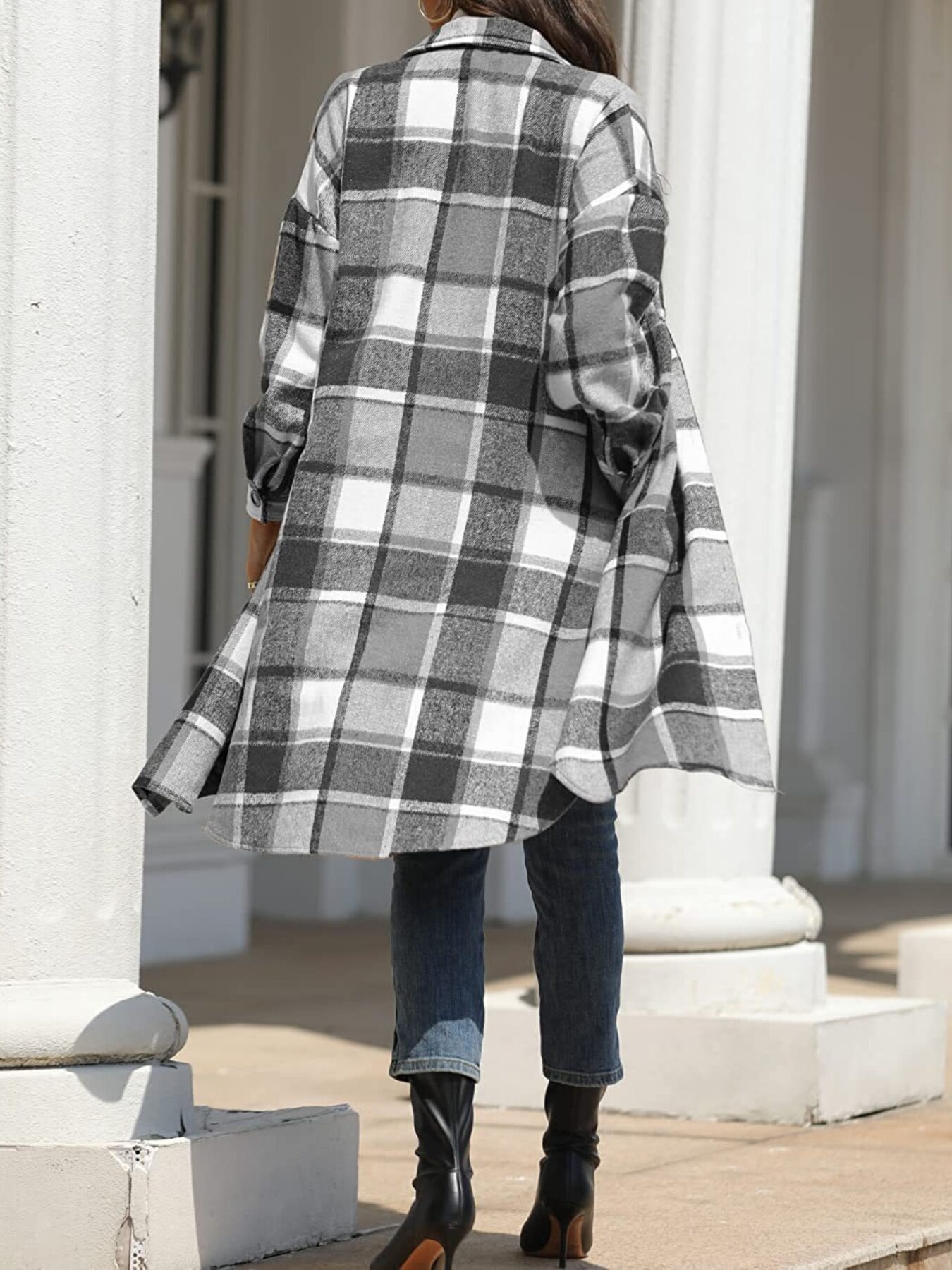 Longline Plaid Button-Up Coat
