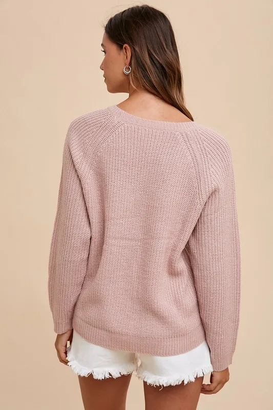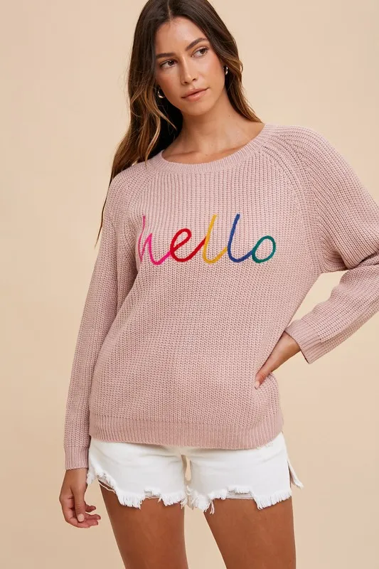 Annie Wear Hello Embroidered Raglan Sleeve Sweater