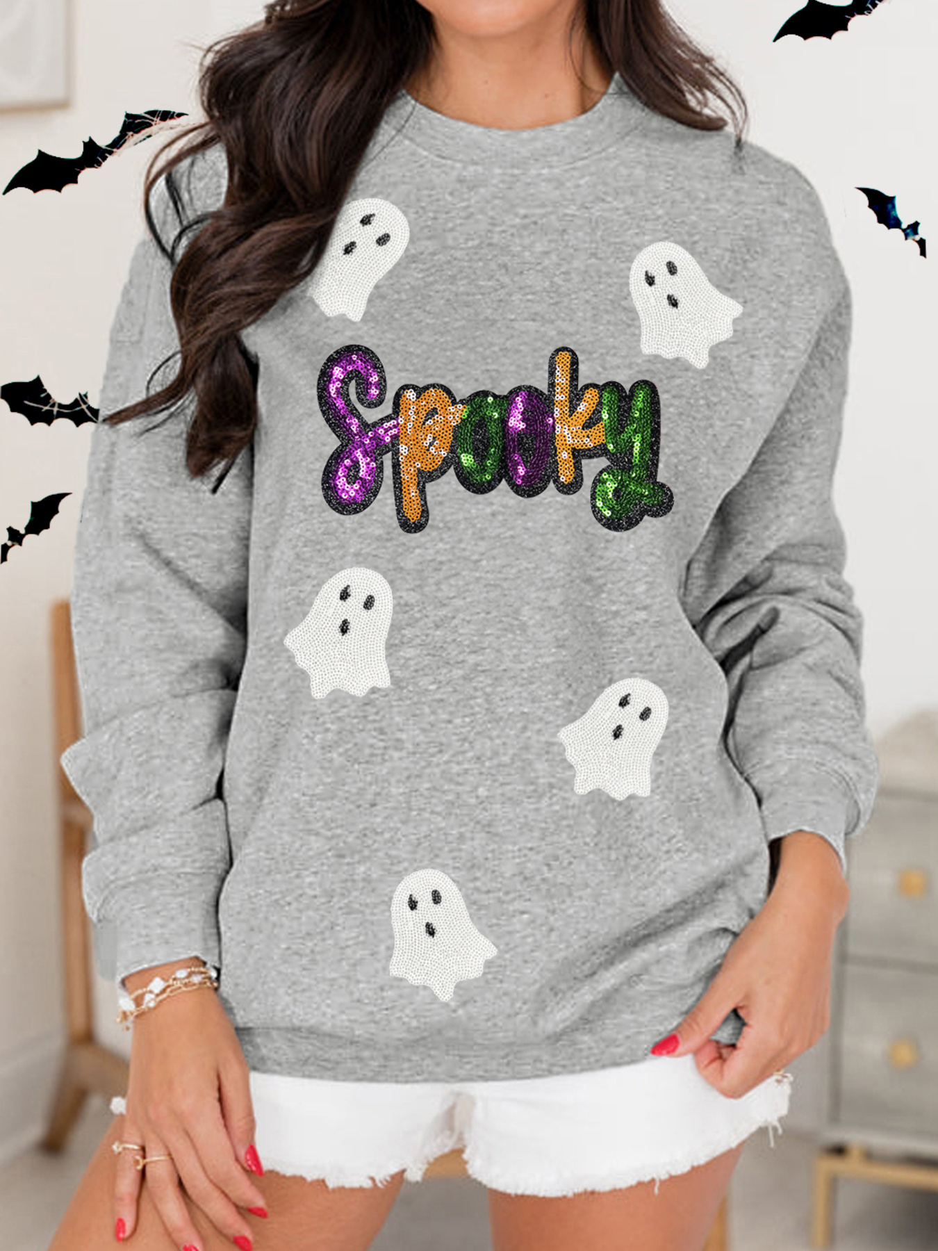 Halloween Spooky Ghost Sequin Sweatshirt