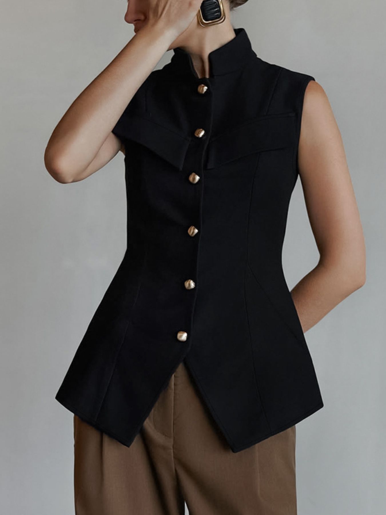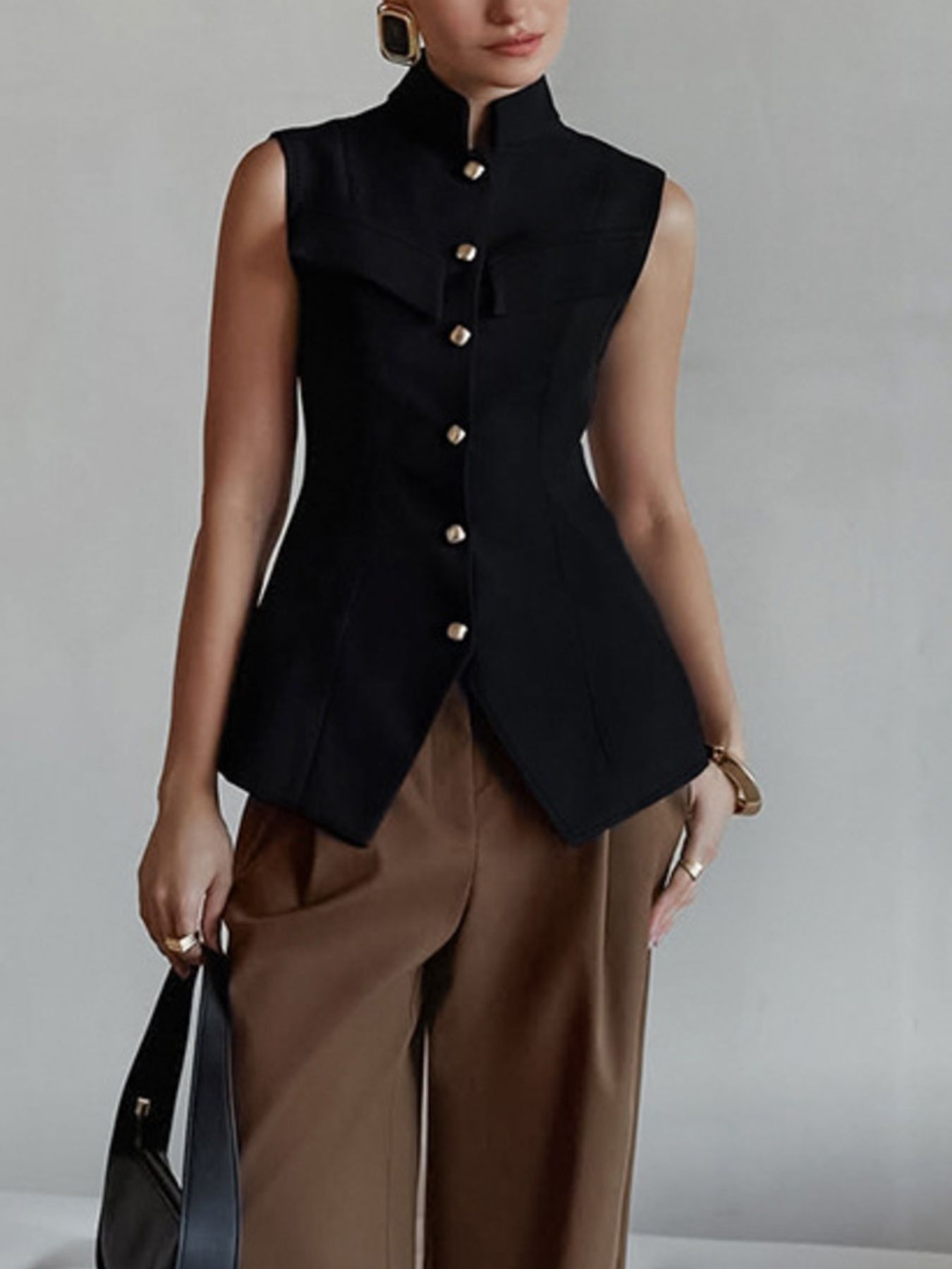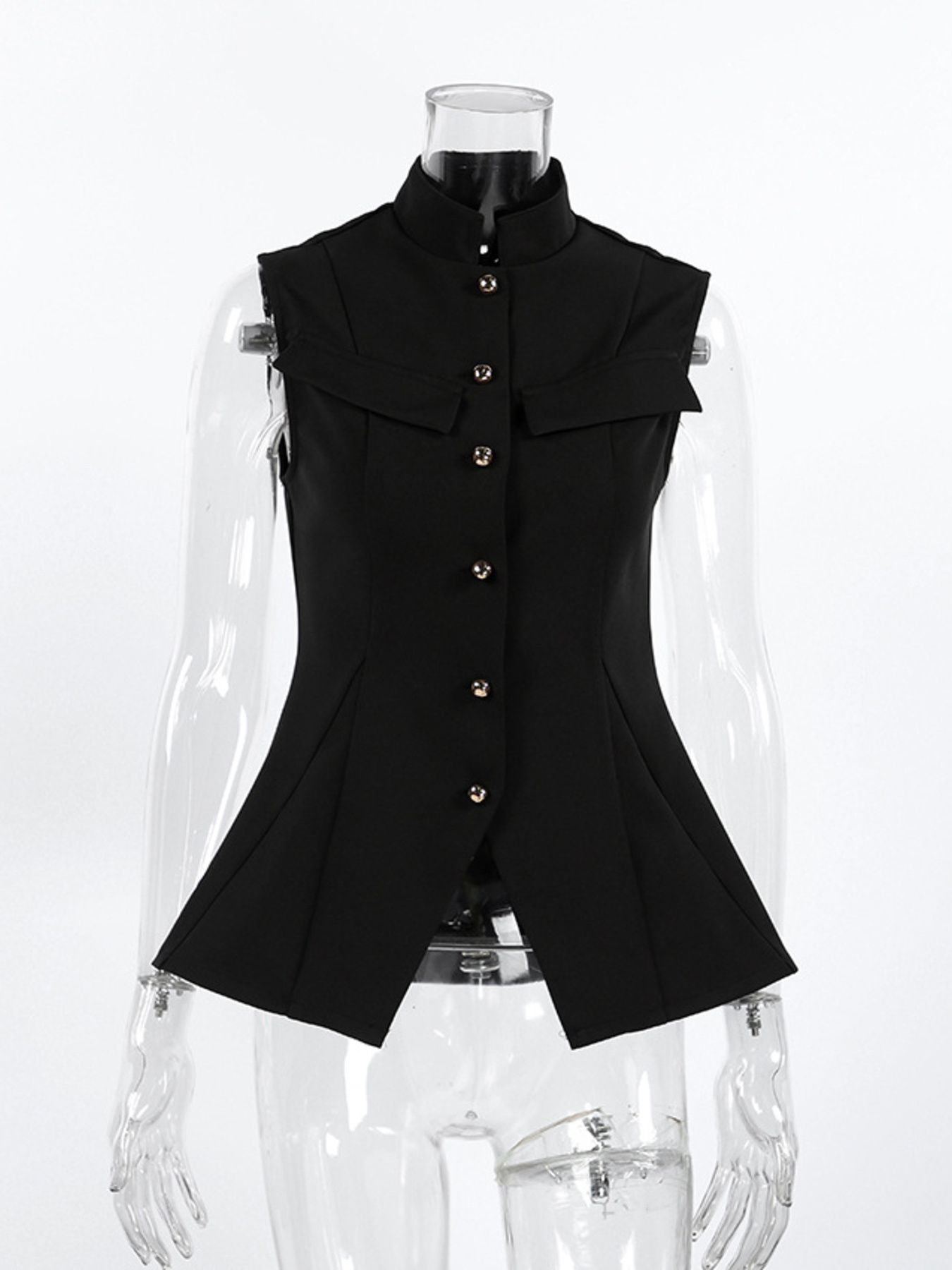 Stand Collar Button-Down Vest Coat
