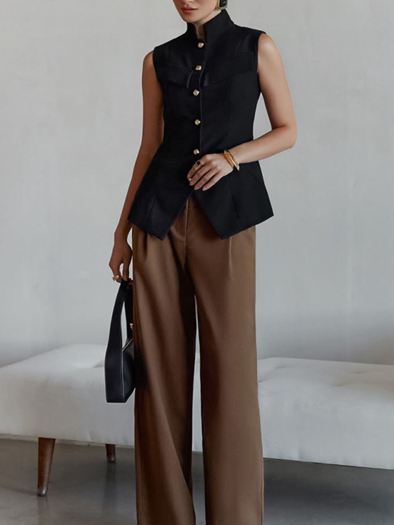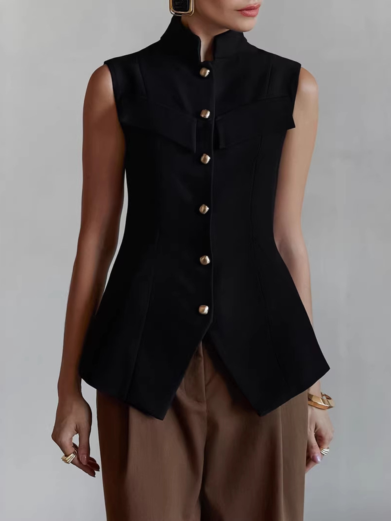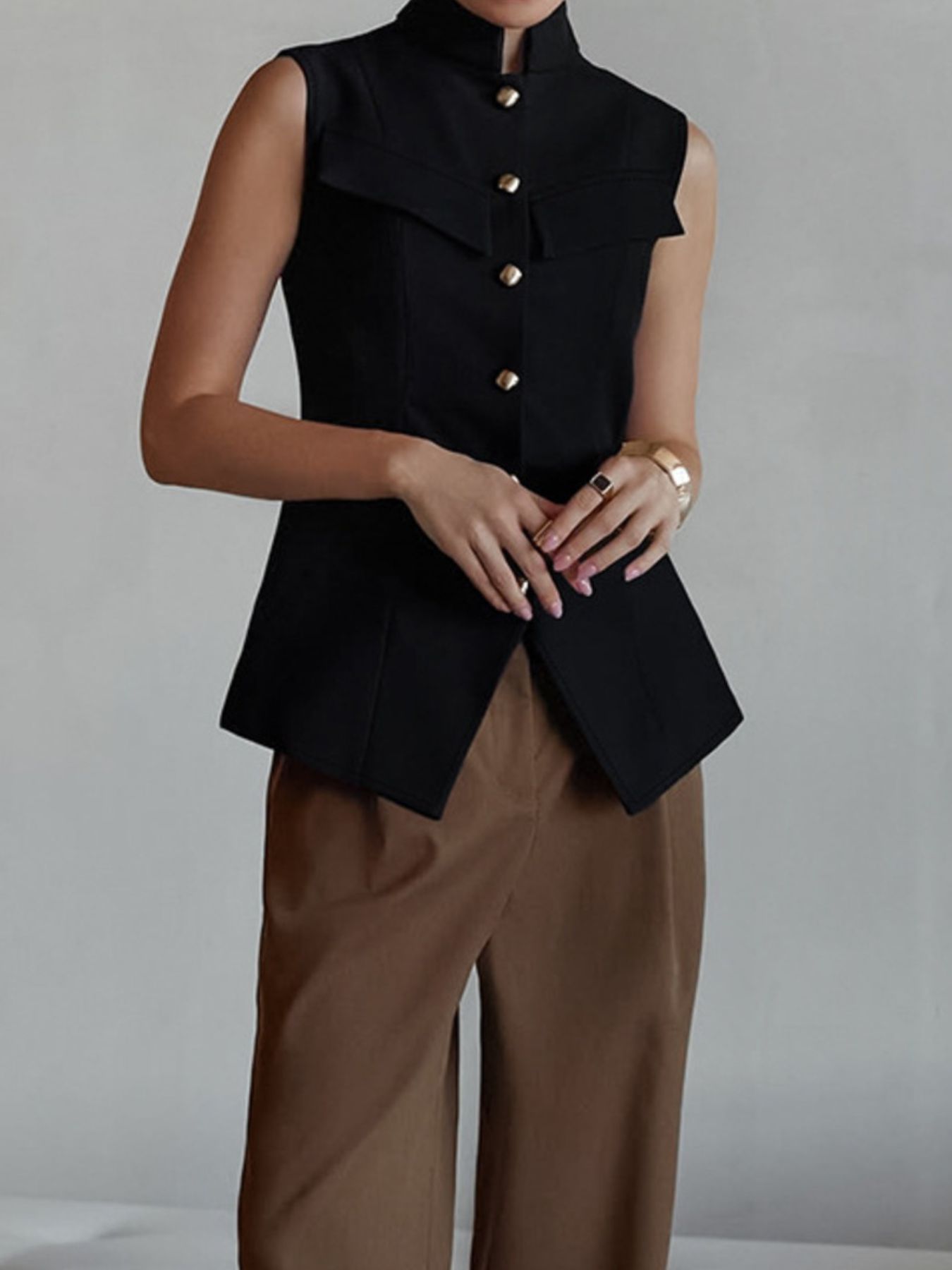 Stand Collar Button-Down Vest Coat