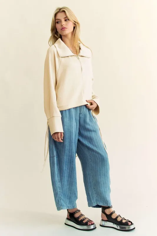 Davi & Dani Drawstring Hem Half Zip Raglan Sleeve Sweatshirt