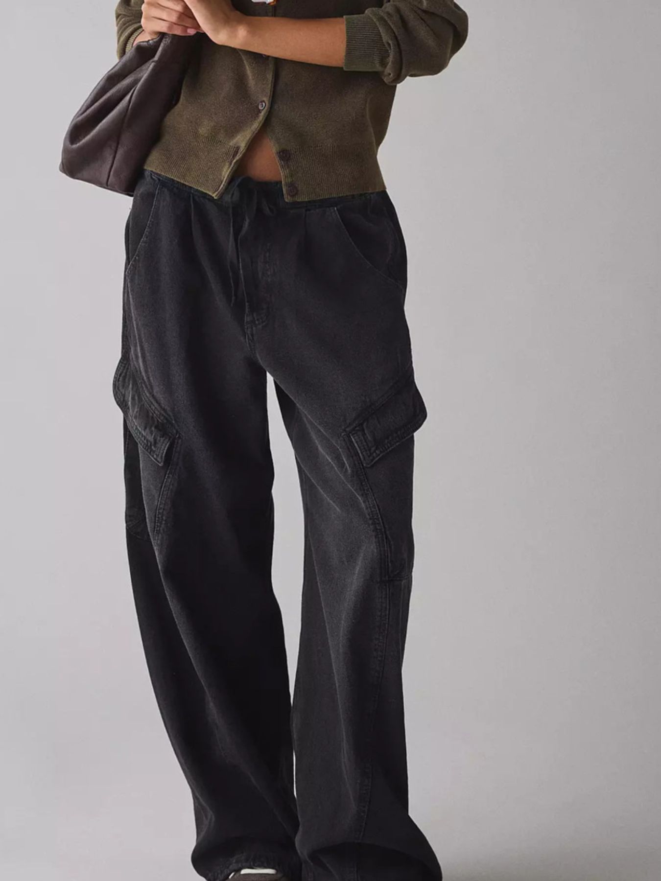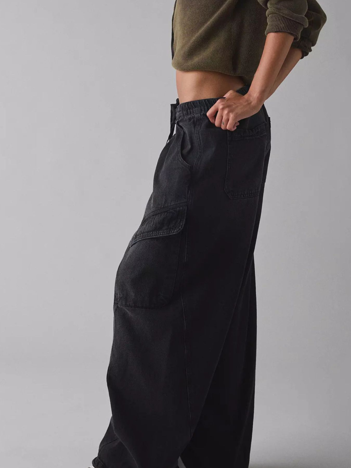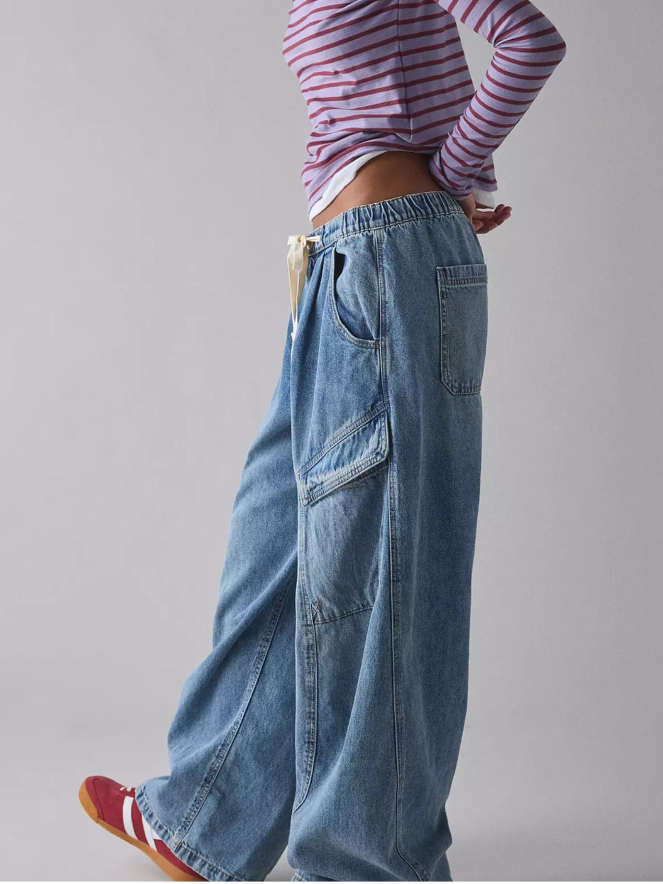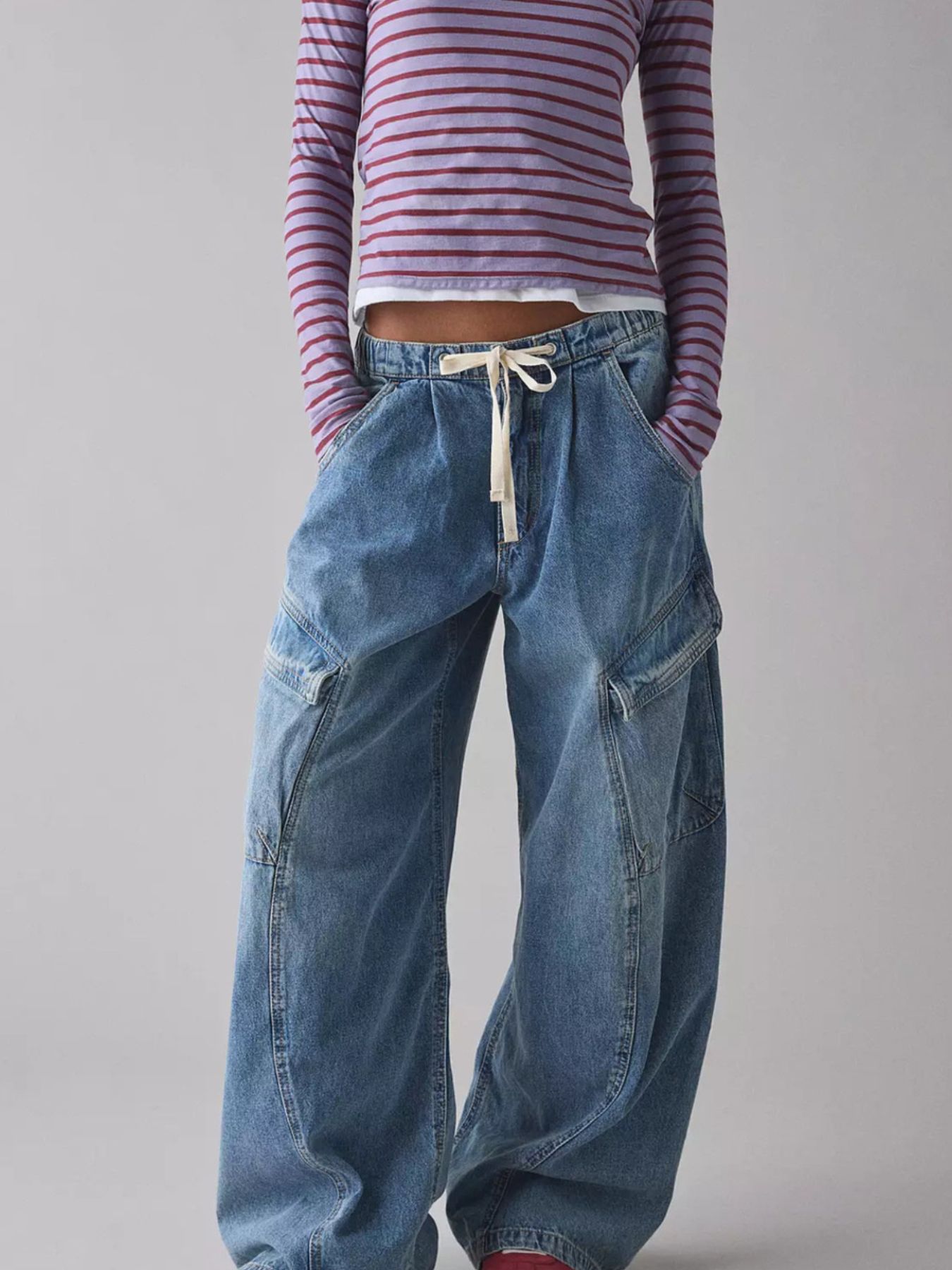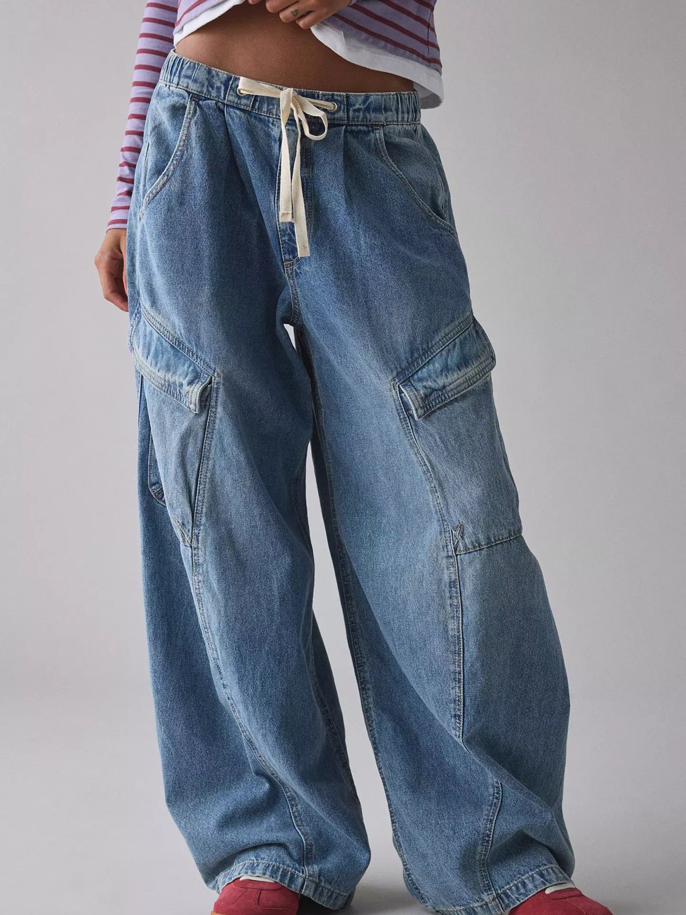 Drawstring Waist Cargo Jeans