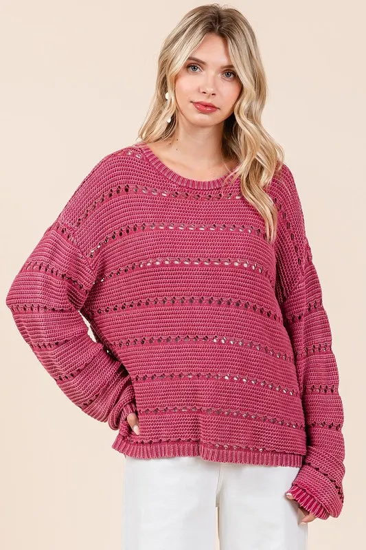 Mittoshop Openwork Round Neck Drop Shoulder Sweater