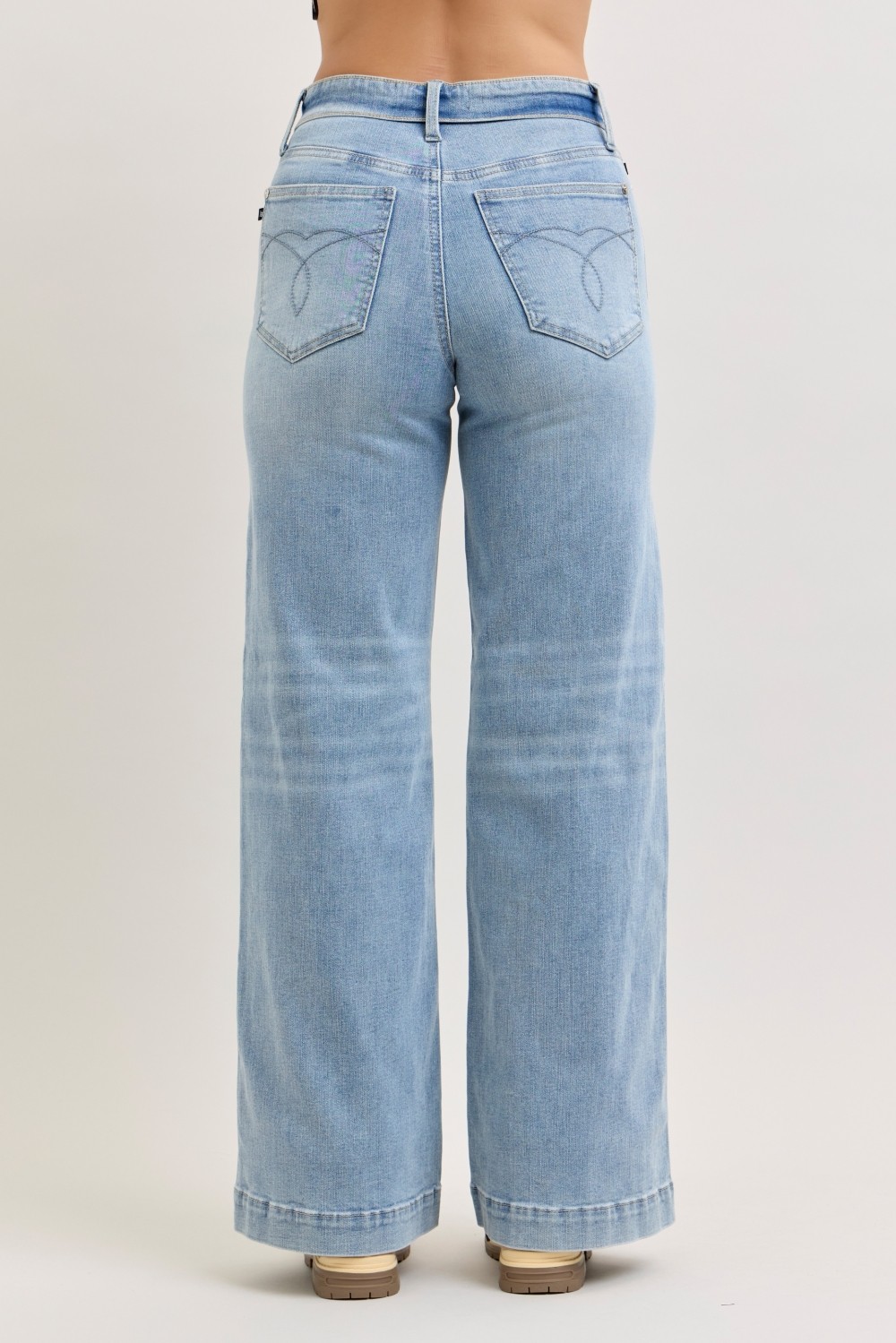 Judy Blue Mid Rise Retro Wide Leg Jeans With Fold-Over Waistband